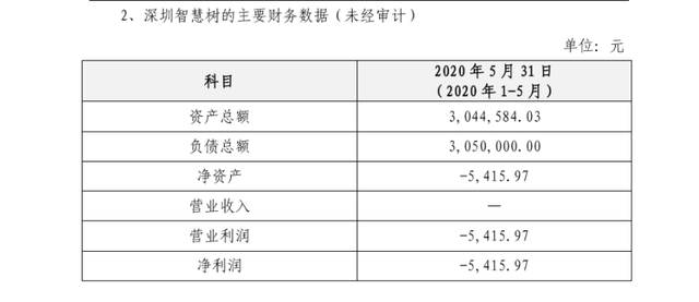 在公告中,华体会体育官方网站-华体会体育(中国)科技披露了深圳智慧树的主要财务数据(未经审计),如下图所示。